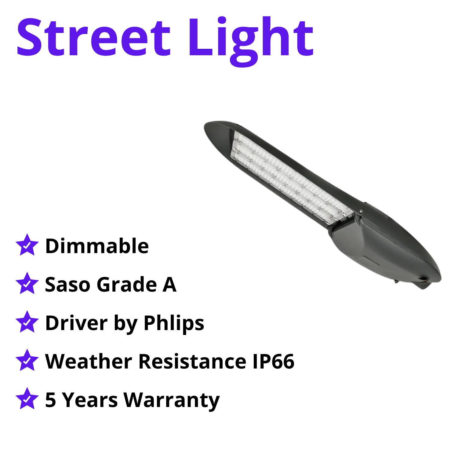 كشاف إنارة شارع ليد قابل للتخفيت 200W / 300W – شريحة Cree ودرايفر Philips مقاوم للماء IP66 (WL-ST201906)