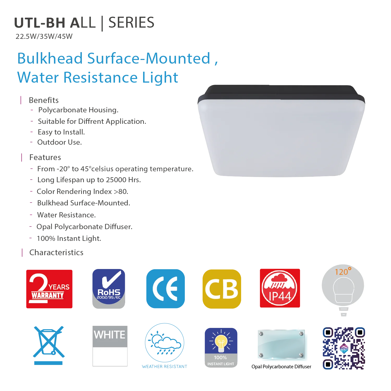 مصباح ليد مقاوم للماء مثبت على السطح – إضاءة عصرية للمساحات الداخلية والخارجية (UTL-BH)