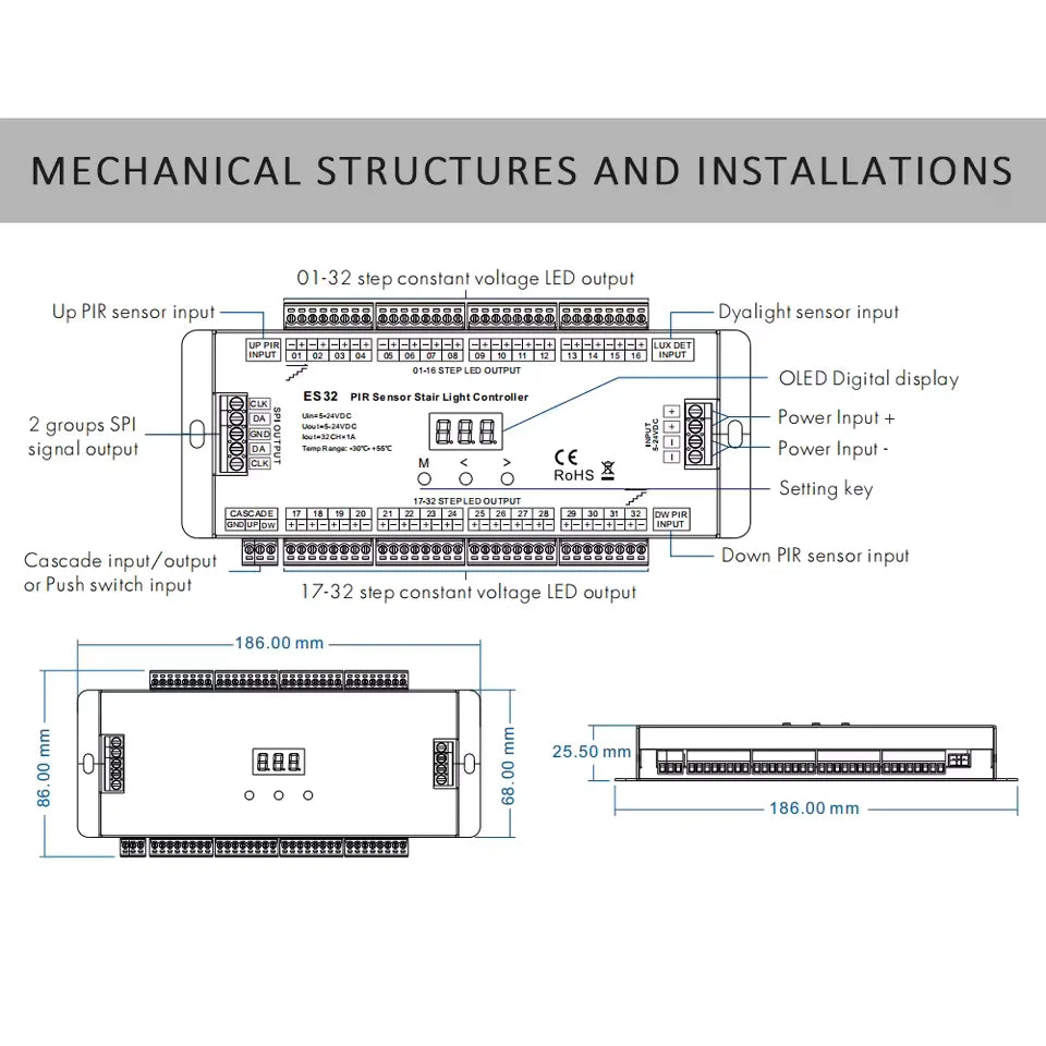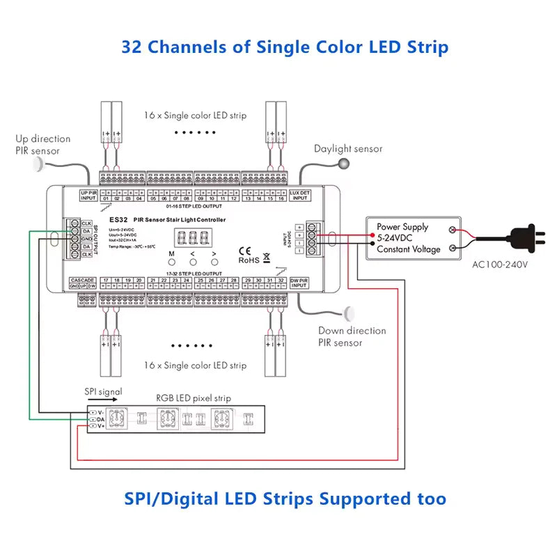 حساس لإنارة الدرج بيانو بـ 32 درجة – جهاز تحكم ذكي بالإضاءة (ES32)