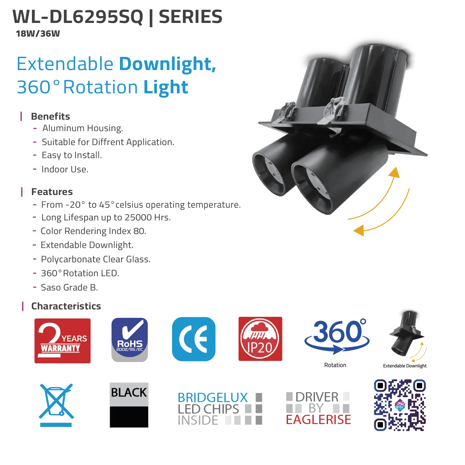 سبوت لايت دوّار وقابل للسحب والإخفاء بالجدار - للمحلات و المنازل الحديثة (WL-DL6295SQ)