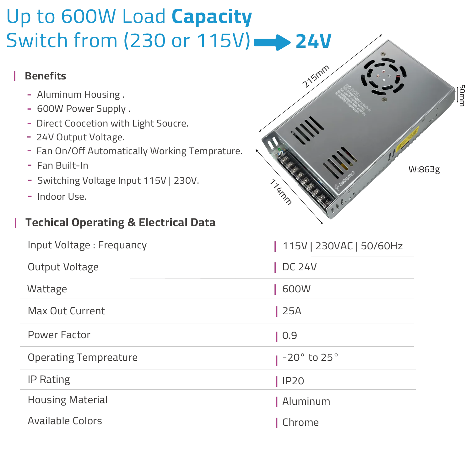 مزود طاقة بقوة 600 واط 24V من الترالايت (P600W24V)