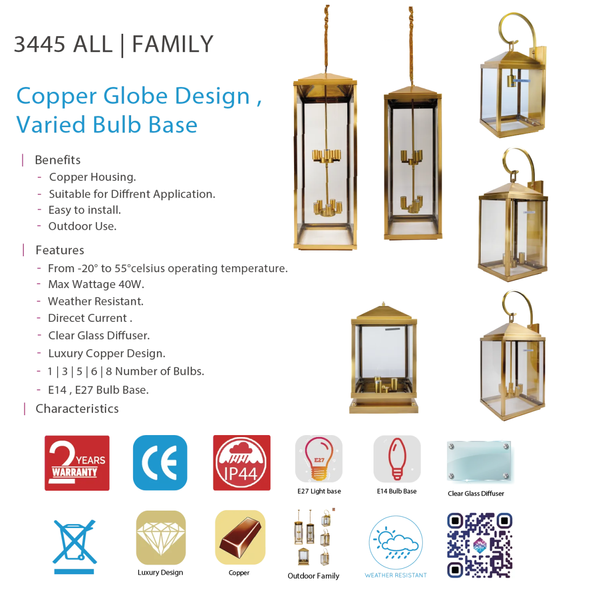 إنارة خارجية نحاسية من الترا لايت (3445 FAMILY) | إضاءة خارجية فاخرة IP44