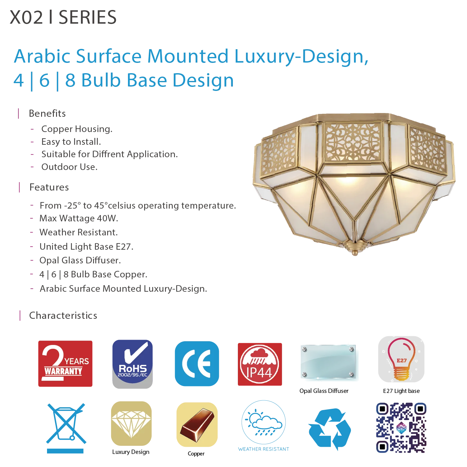 مصباح سقفي نحاسي فاخر من الترا لايت – تصميم عربي مميز للإضاءة الخارجية الفاخرة (X02)