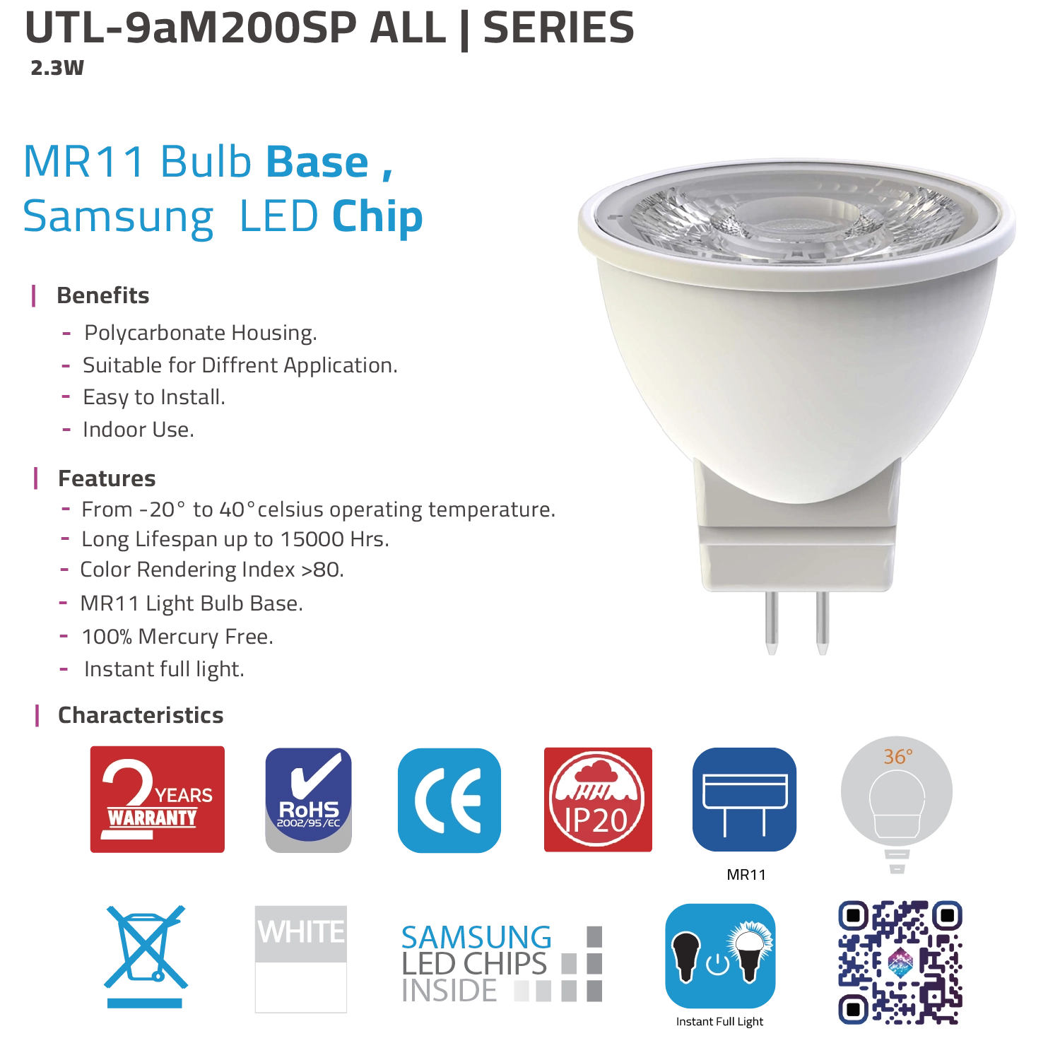لمبة ليد MR11 من الترالايت — بكفاءة عالية وشريحة سامسونج للإضاءة الفورية (UTL-9aM200SP)