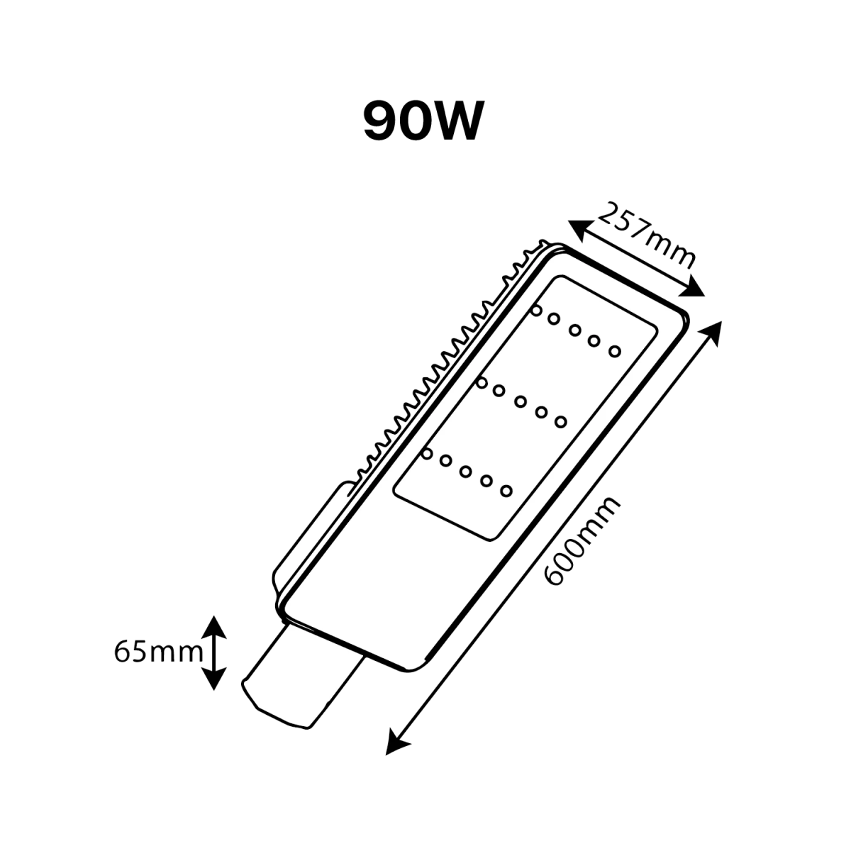 كشاف شارع ليد الترا لايت 60–90 وات، هيكل ألومنيوم IP65 (TUS019B)