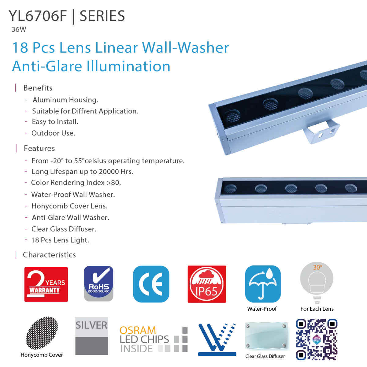 كشاف الترالايت جداري خارجي (YL6706F) – إضاءة حائط ضد الماء 36 واط بعدسات OSRAM
