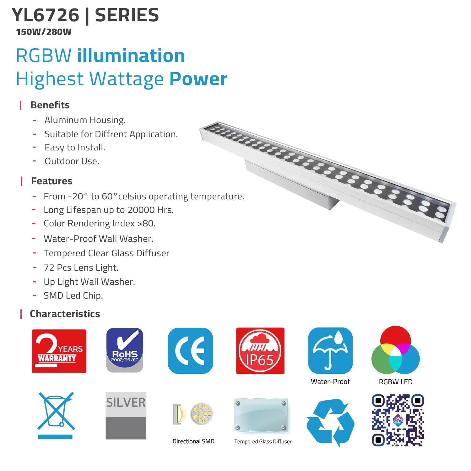 كشاف حائط ليد قوي 150 واط الترالايت للإضاءة الخارجية – مقاوم للماء IP65 (YL6726)