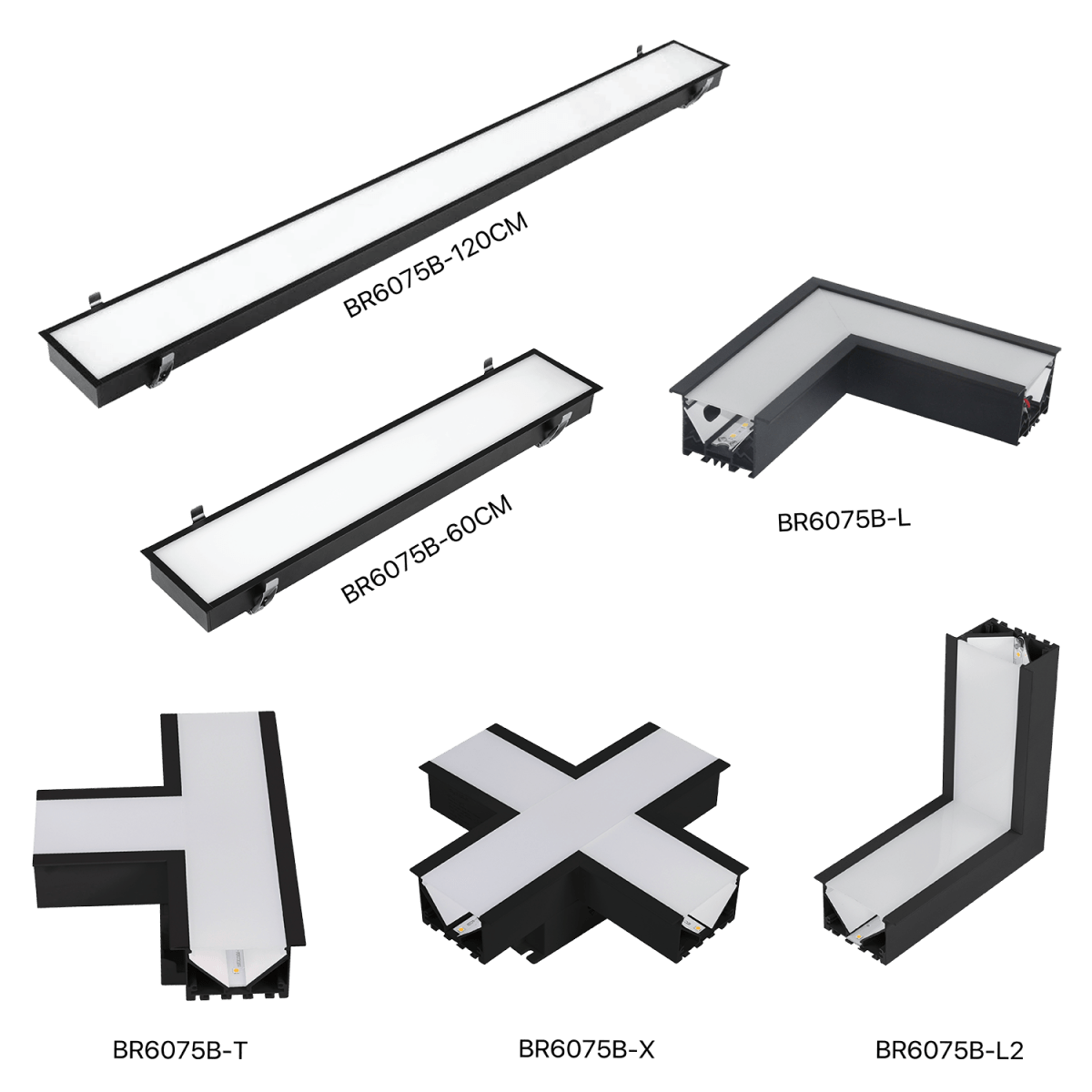 الترا لايت إنارة خطية داخل الجدار لون اسود قابلة للتوصيل (BR6075B)