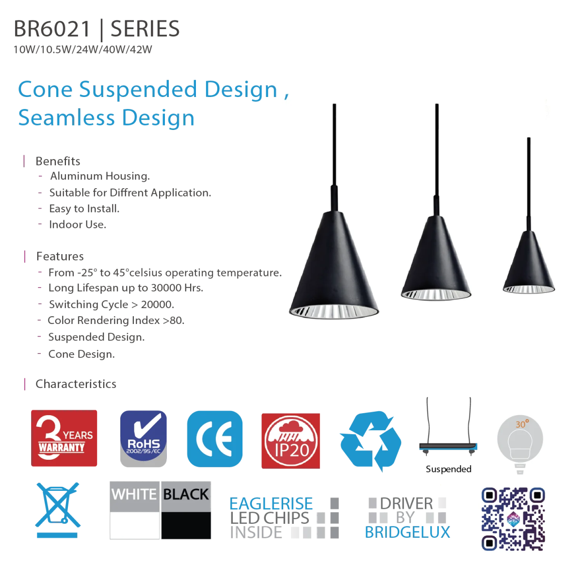 إنارة معلقة مخروطية داخلية من الترالايت (BR6021)