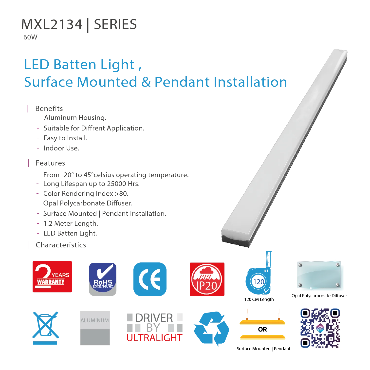 إطار إنارة باتن خطية 1.2 متر 60 واط (MXL2134)