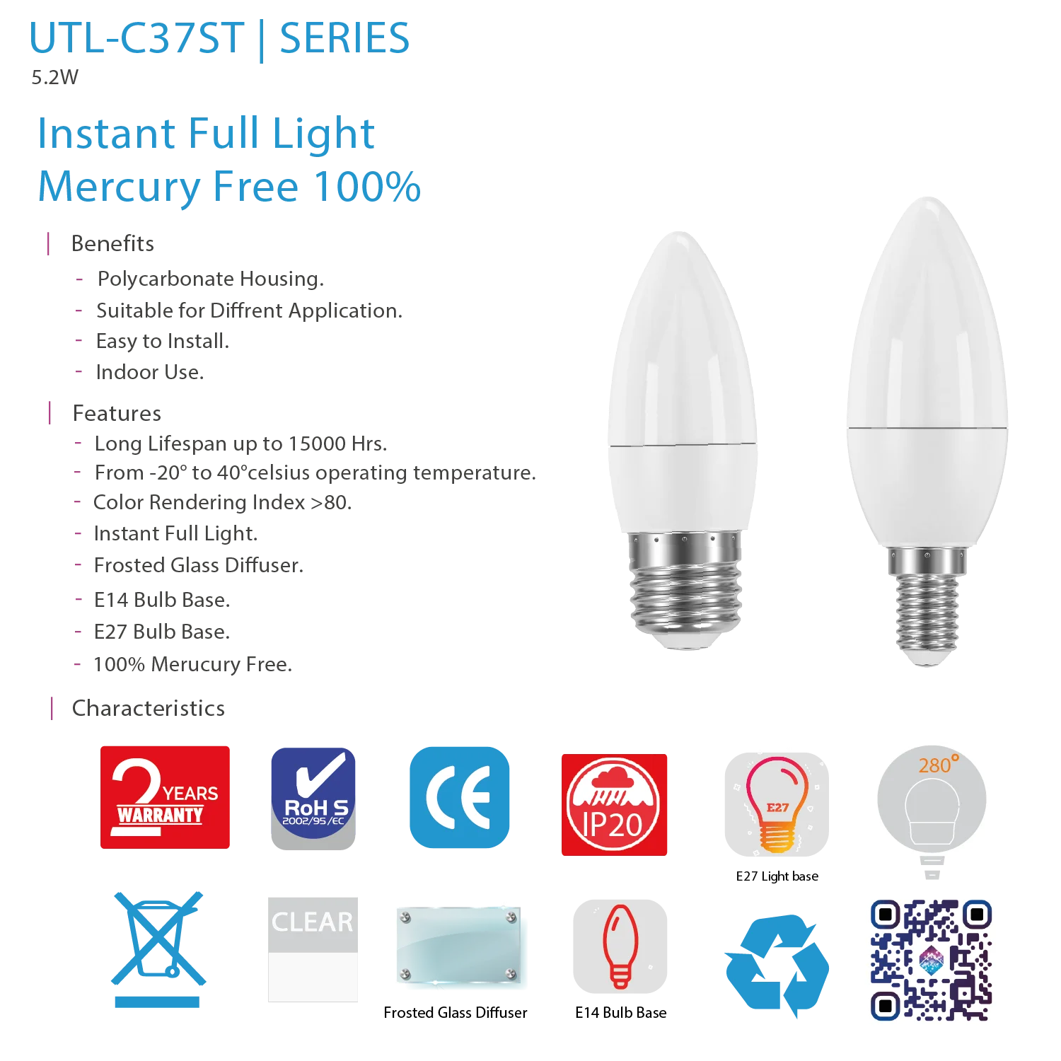 لمبة ليد شمعة ثلجية الترالايت 5.2 واط - إضاءة فورية وموفرة للطاقة (UTL-C37ST)