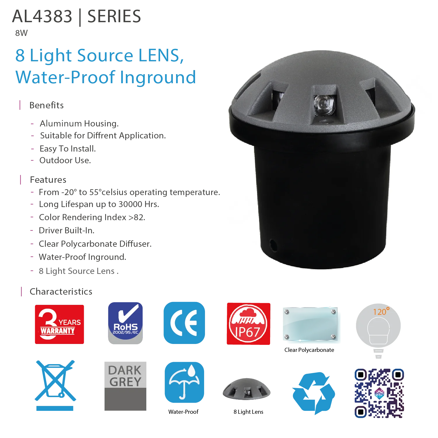 إضاءة أرضية ليد مدمجة مقاومة للماء من الترالايت (AL4383) | إنارة خارجية للحدائق والممرات