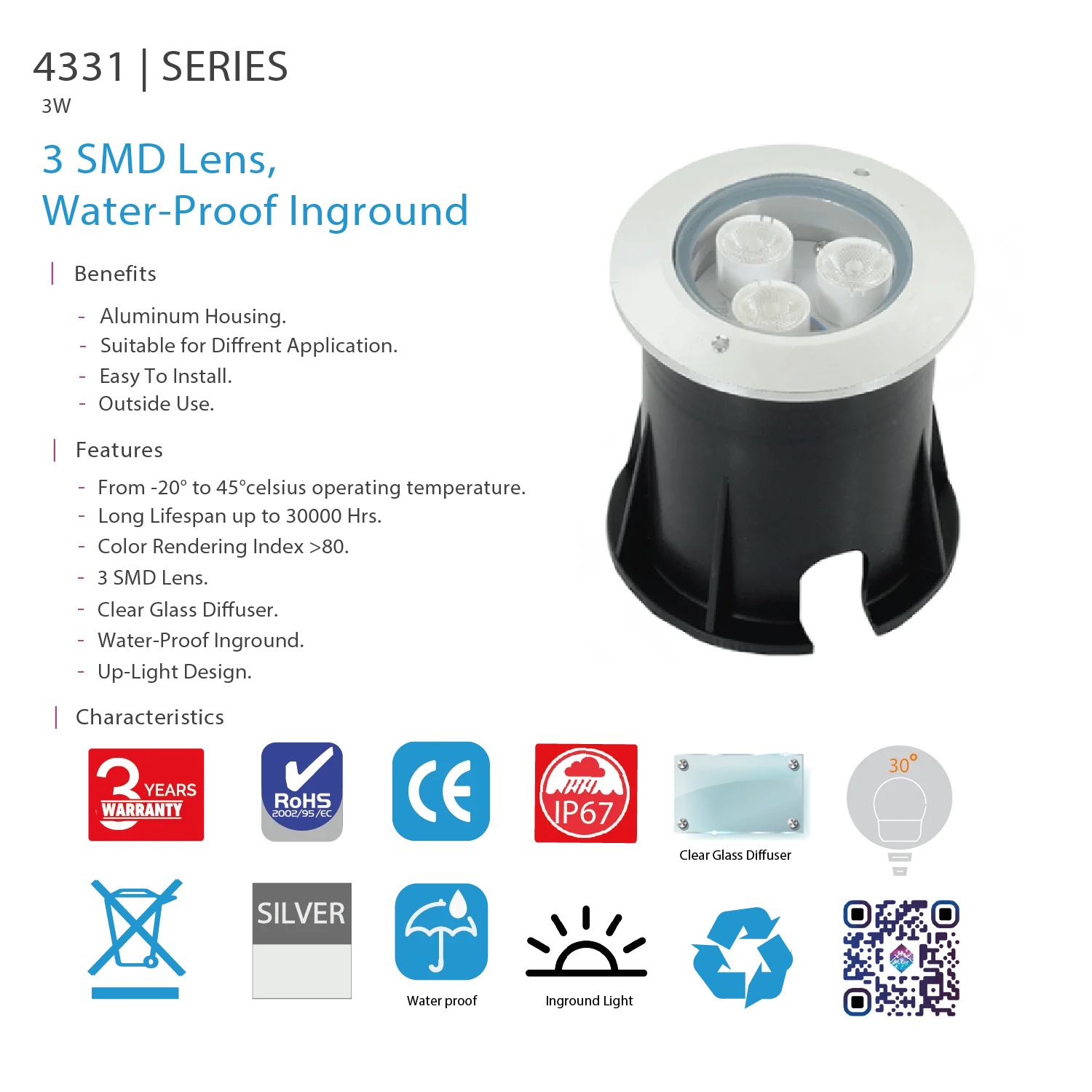 كشاف ليد أرضي مقاوم للماء من الترالايت – تصميم Up-Light بزاوية 30° وهيكل ألمنيوم (4331)