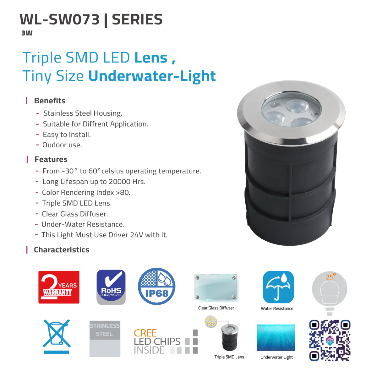 إضاءة ليد ملونة للمسابح 3 واط - إنارة تحت الماء بحماية IP68 ضد الماء (WL-SW073)