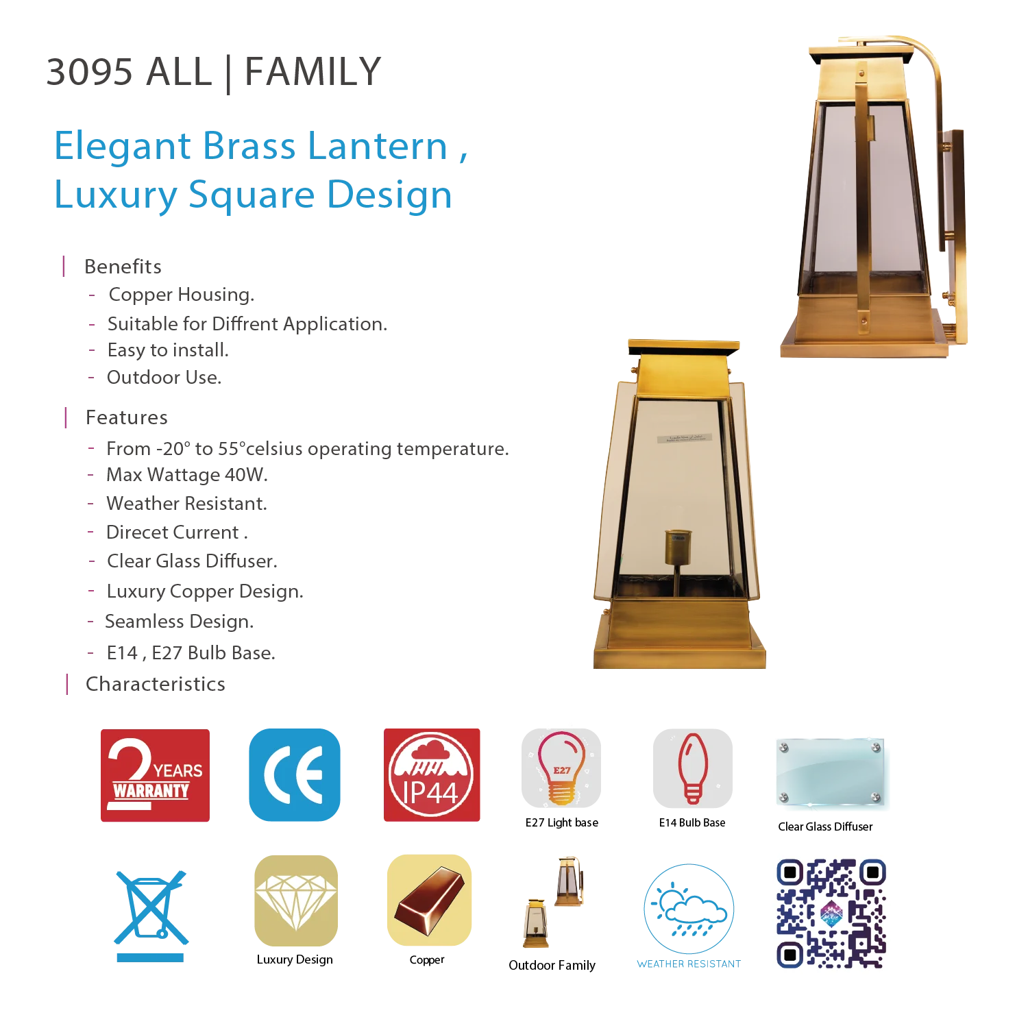 إنارة خارجية نحاسية فاخرة للحدائق والواجهات IP44 (3095)