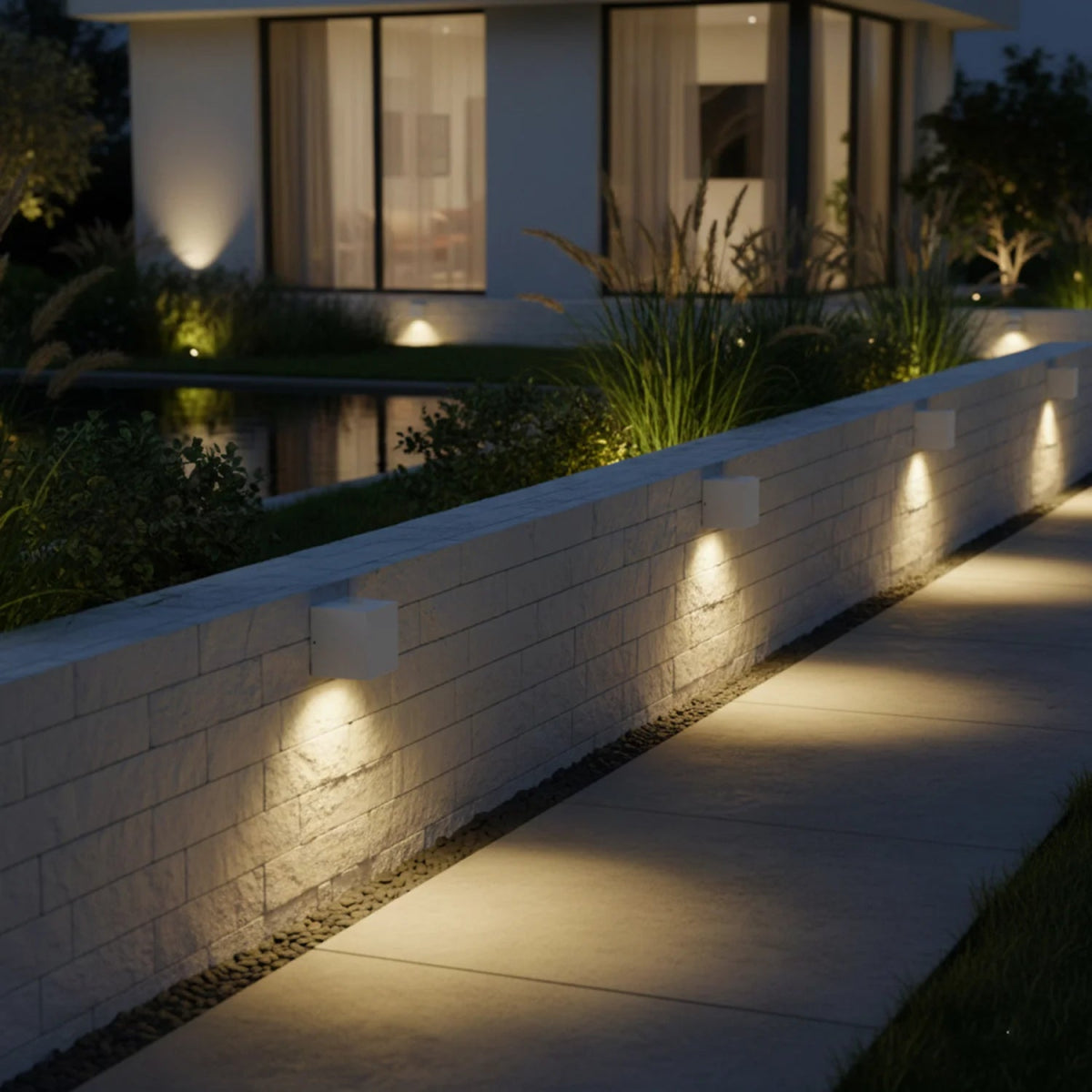 الترالايت إنارة جدارية مودرن , بشكل مربع , مصنوع من الالمنيوم و IP44 مما يجعله مضاد للغبار والامطار , يأتي بقاعدة لمبة GU10 بقاعدة مفردة للاسفل او للاعلى , مناسب للاستخدام في المطاعم , الفيلات , المقاهي.