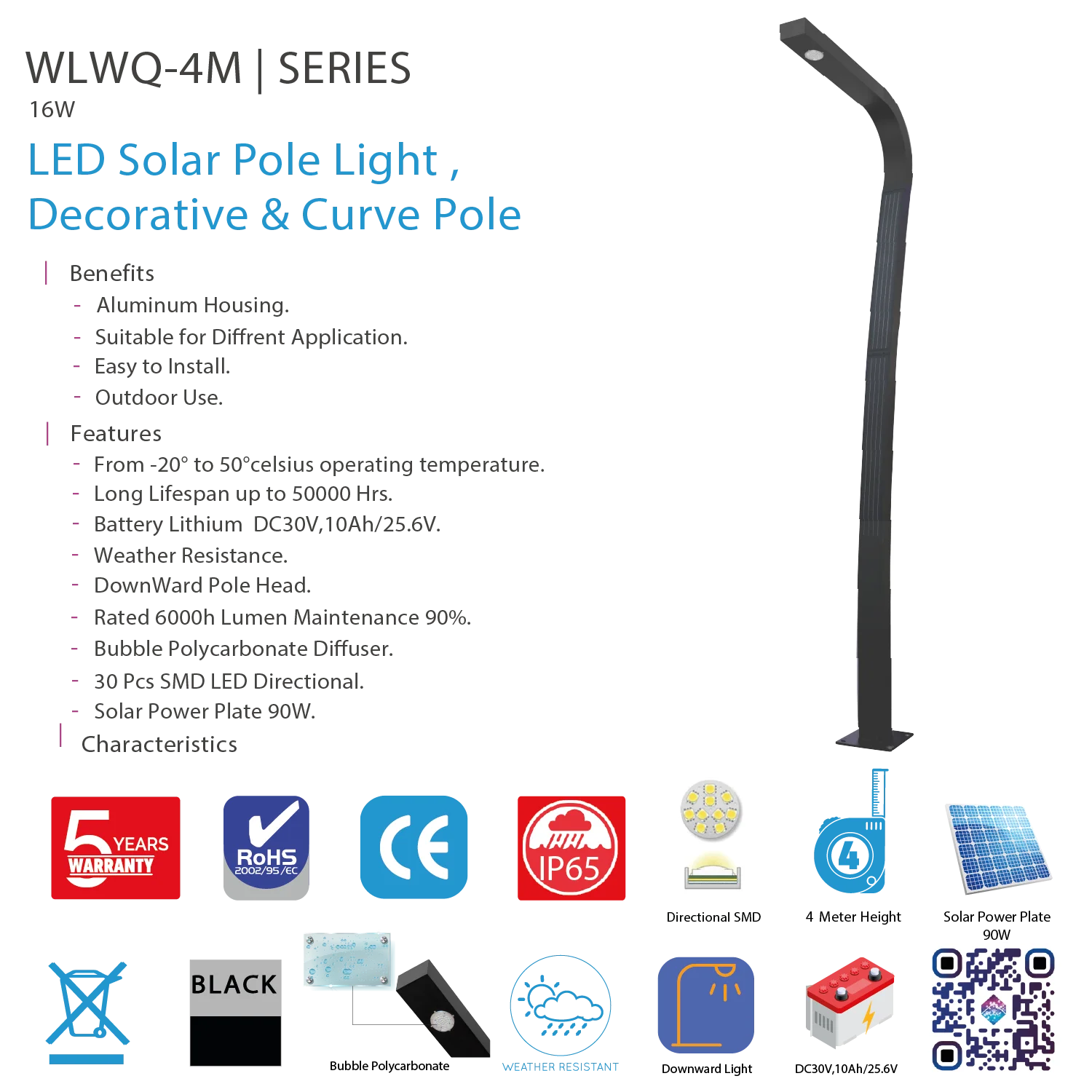 عامود إنارة شوارع بالطاقة الشمسية 4 متر 16 واط IP65 (WLWQ)