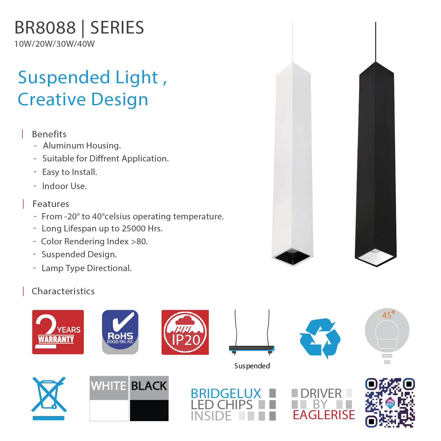 إنارة سقفية معلقة مربعة موجهة من الترالايت - 20 واط، هيكل من الألمنيوم (BR8088-SQ)