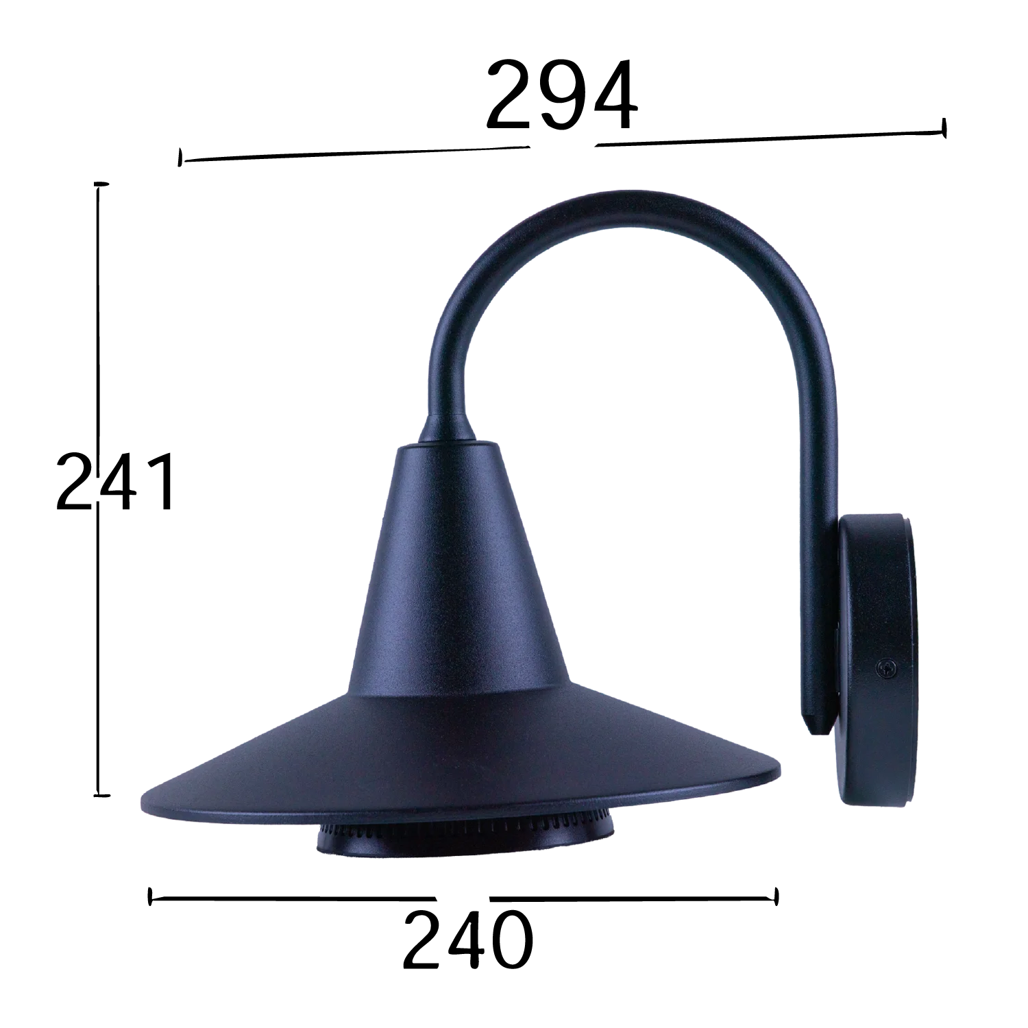 إطار إنارة جداري خارجي - إضاءة أنيقة بتصميم عقلة البجعة وقاعدة E27 مقاومة للماء IP54 لون أسود (WL-ODL-1012)