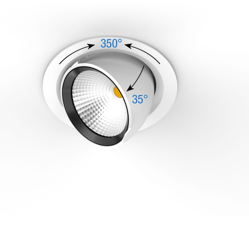 Modern and reliable LED downlight equipped with high-efficiency BRIDGELUX chips and a Philips driver for stable, powerful illumination. Features adjustable light direction and a durable aluminum housing that ensures stability and exceptional lighting quality.