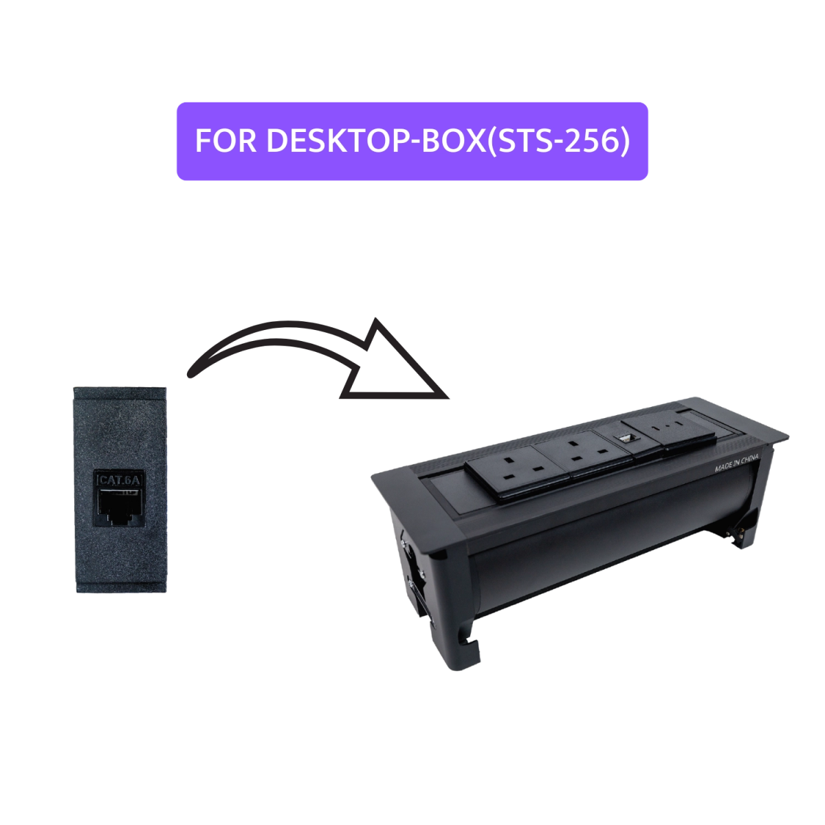 Ultra Light Cat 6A Socket - With Cable Cat6 1.5M - For Desktop-Box (ZM-F12)
