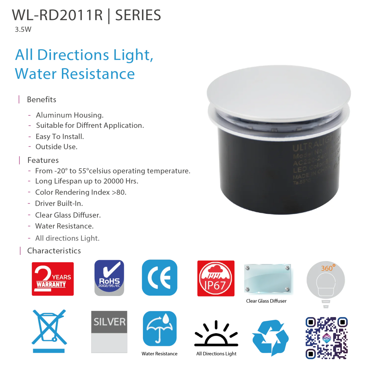 Ultralight LED In-ground Light 3.5W IP67 (WL-RD2011R)